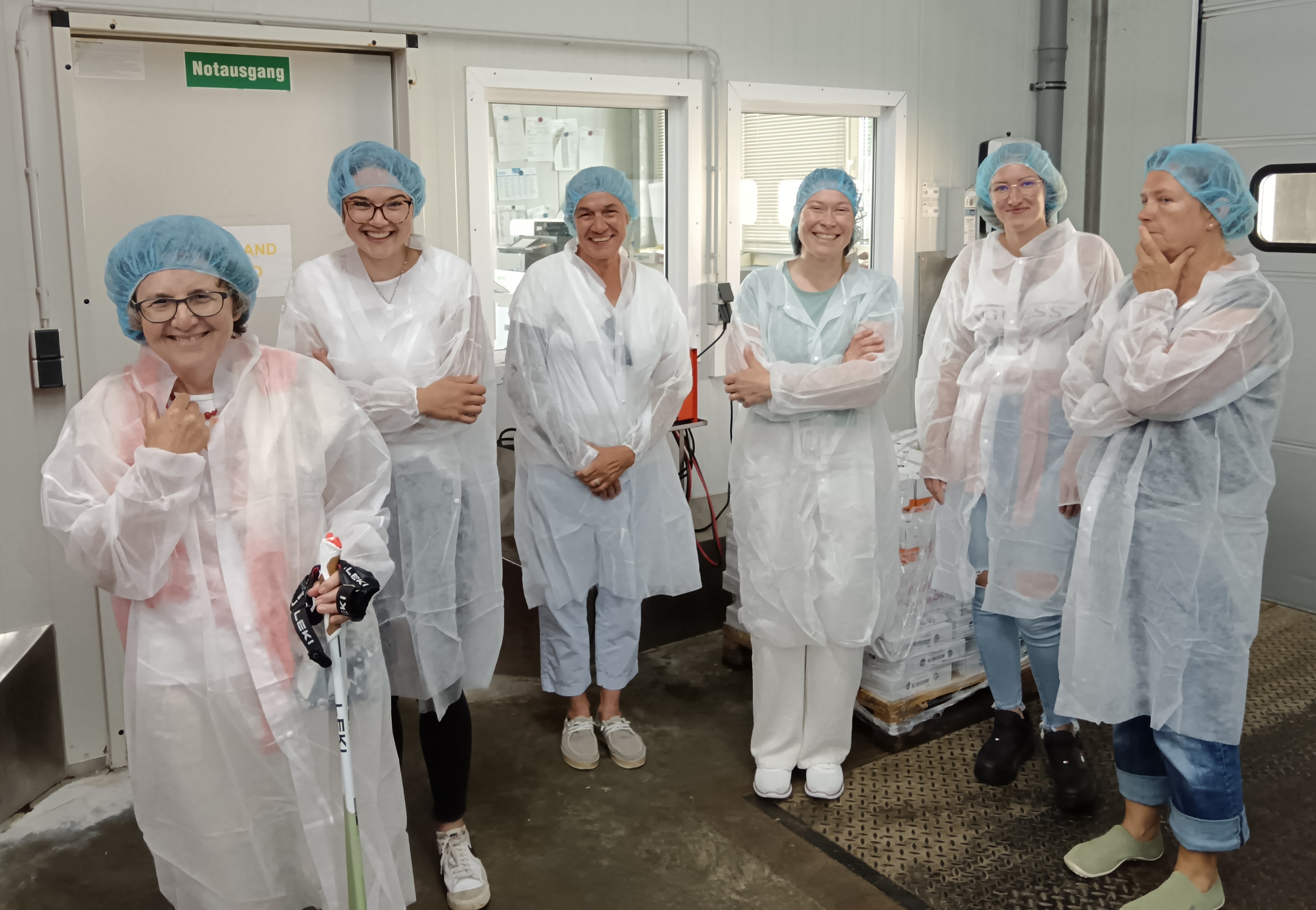 Erste Station war die Molkerei Bergpracht in Siggenweiler. Inhaber und Geschäftsführer Hans-Georg Geßler erläuterte den 18 Frauen die Herstellung von Camembert, Mozzarella und anderen Spezialitäten. Aus hygienischen Gründen ließ sich die Produktion nur durch eine Glasscheibe verfolgen, doch Lagerung und Verpackung hinterließen durch den Besuch der Kühl- und Tiefkühlhallen einen bleibenden Eindruck. Zum Abschluss gab es eine üppige Verkostung der frisch produzierten Käsesorten.