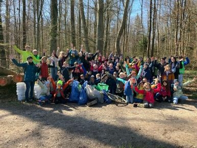 Bei strahlendem Sonnenschein fand am Donnerstag, 3. April 2025, im Lorettowald eine besondere Aufräumaktion statt: 55 Schülerinnen und Schüler der dritten Klassen der Allmannsdorfer Grundschule zogen gemeinsam mit Försterin Irmi Weishaupt, dem BUND sowie den Lehrerinnen der Schule los, um im Wald der Spitalstiftung Müll zu sammeln.