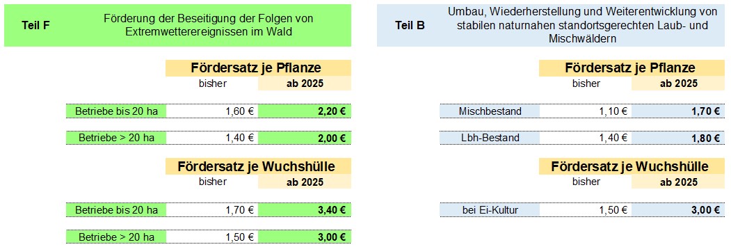 Grafik "Fördersätze ab 2025" (Kreisforstamt)