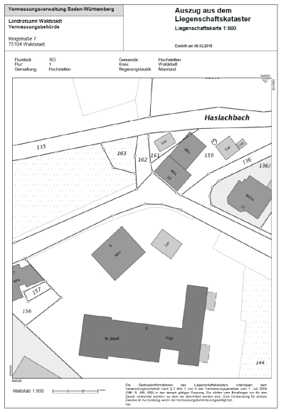 Vorsicht vor überhöhten Kosten: Private Anbieter von Katasterauszügen handeln nicht im Auftrag der Vermessungsverwaltung. Verschiedene Dienstleister bieten im Internet Katasterauszüge an. Diese Dienstleister handeln privatrechtlich und nicht im Auftrag der Vermessungsverwaltung. Bitte beachten Sie: Wenn Sie einen Dienstleister in Ihrem Namen mit der kostenpflichtigen Bestellung von Katasterunterlagen beauftragen, befreit Sie das nicht von der Gebührenpflicht gegenüber der Vermessungsverwaltung Baden-Württemberg.