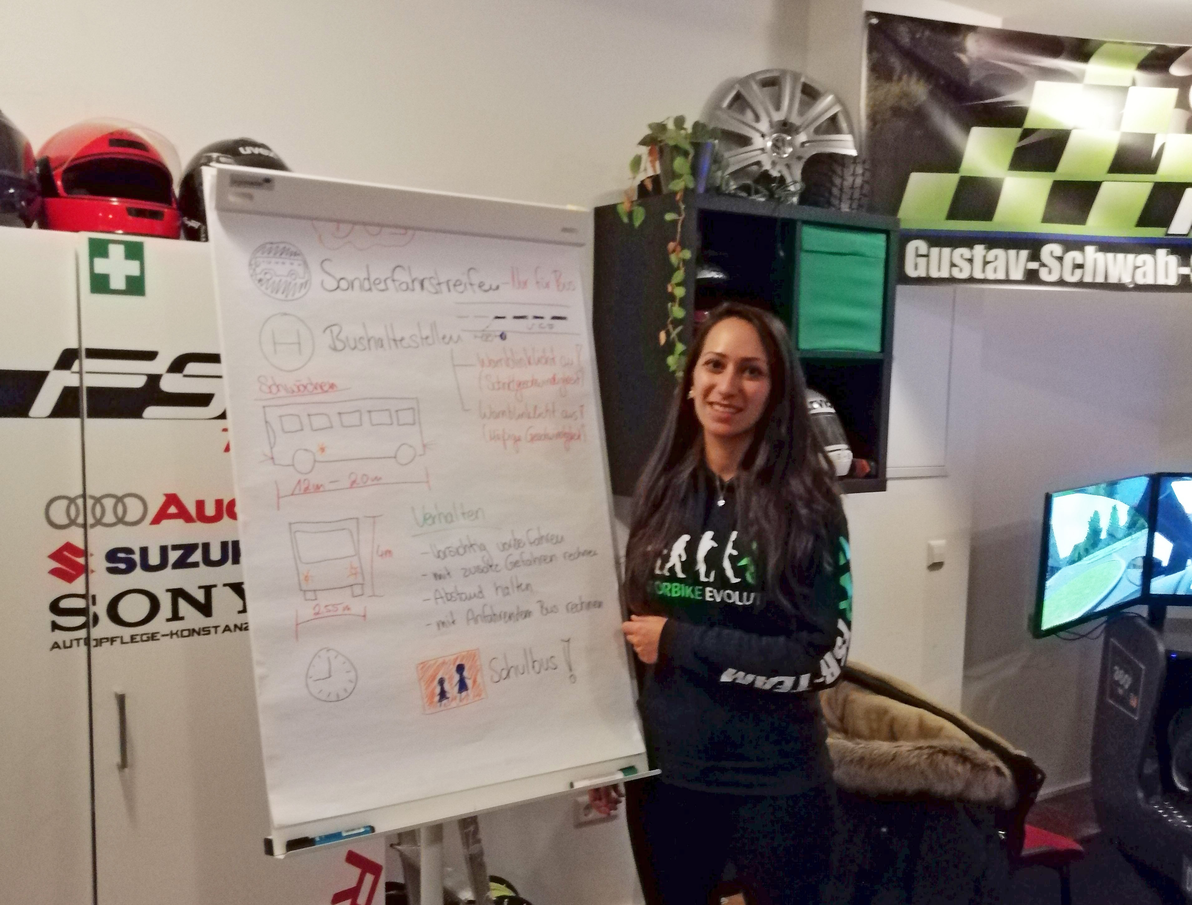 • und macht derzeit eine weitere Ausbildung zur Fahrlehrerin